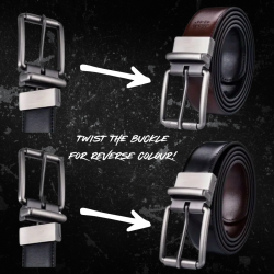 Double the style, double the value. This 2-in-1 Cowhide Belt flips between rich Coffee brown and classic Black, giving you two versatile looks in one premium piece. Crafted from genuine cowhide leather, it’s built for both everyday wear and statement styling.