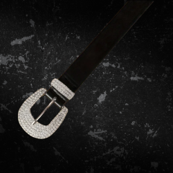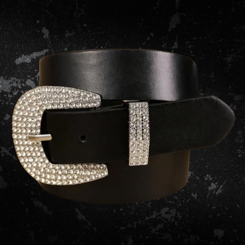 Details: Material: PU Leather, Lengths: 102cm / 112cm / 122cm / 132cm, Rhinestone-Encrusted Buckle, Glamorous Statement Accessory